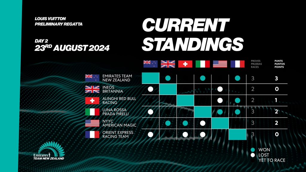 EMIRATES TEAM NEW ZEALAND GAIN TWO MORE POINTS ON RACE DAY TWO